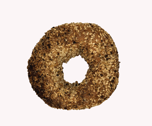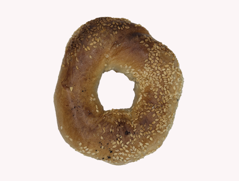 A classic Montreal-style bagel topped with golden sesame seeds — slightly sweet, perfectly chewy, and oven-baked for a rich, nutty flavor.