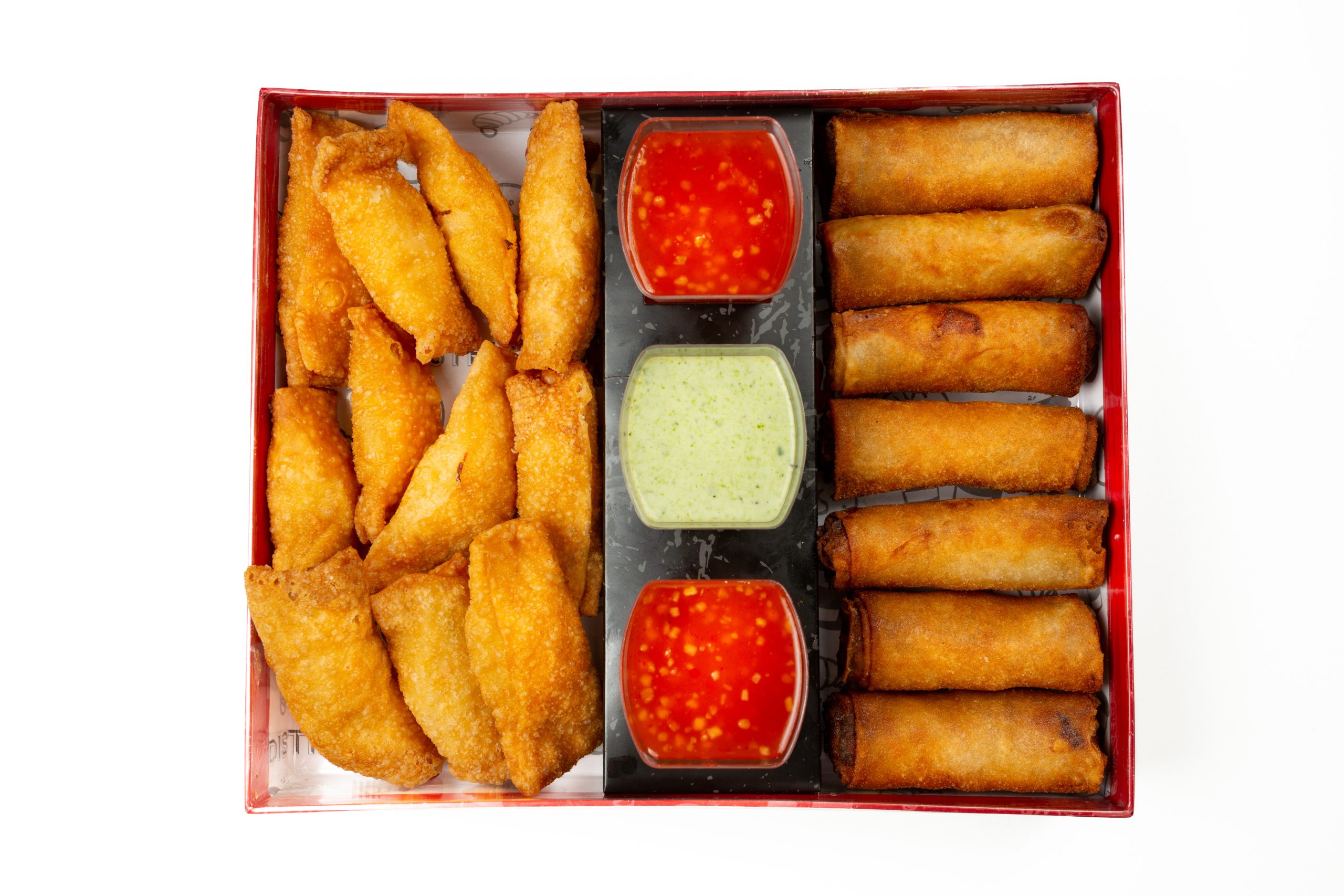 These golden egg rolls are packed with a savory filling of seasoned vegetables and protein, all wrapped in a crispy, golden-brown shell. Perfectly paired with a sweet and tangy dipping sauce, they make for a satisfying snack or appetizer.