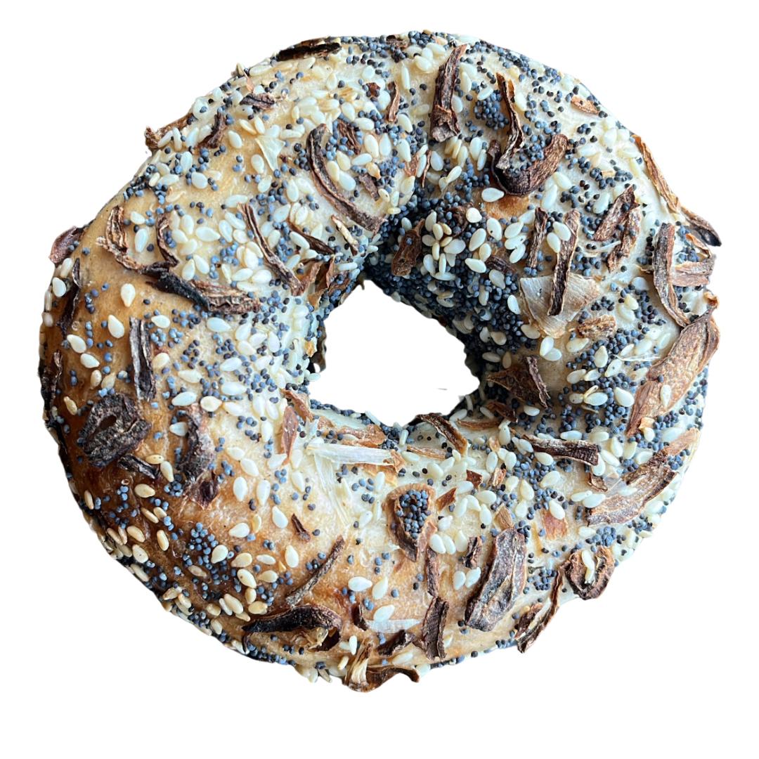Our most flavorful bagel — topped with sesame, poppy seeds, onion, garlic, and sea salt. Bold, savory, and packed with classic Montreal-style character.